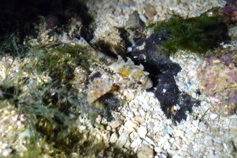 My first marine creature encounter is a small octopus. Its width is slightly smaller than the length of my compact camera. The image is quite blur as I was still adjusting to the dark environment and handling lights and camera at the same time.